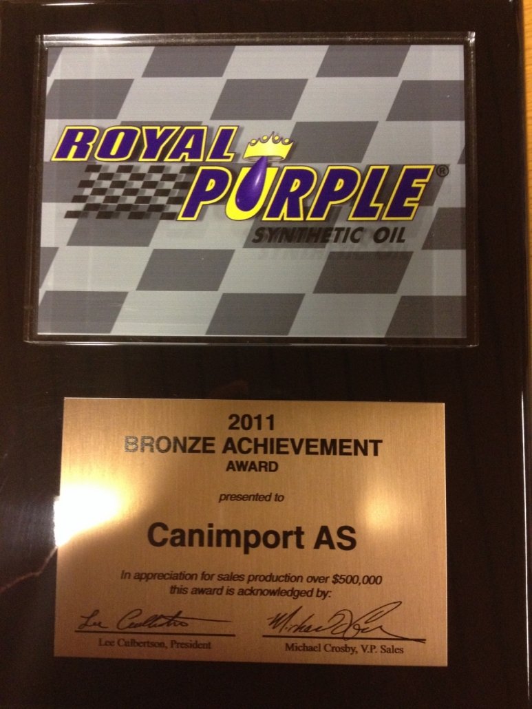 Siden flere av våre kunder også etterspurte smøreoljer, startet vi å importere Royal Purples helsyntetiske smøreoljer. Royal Purple ble så etablert i Norge i 1996 etter at innehaveren av Can Import As besøkte produsenten i Houston, Texas.