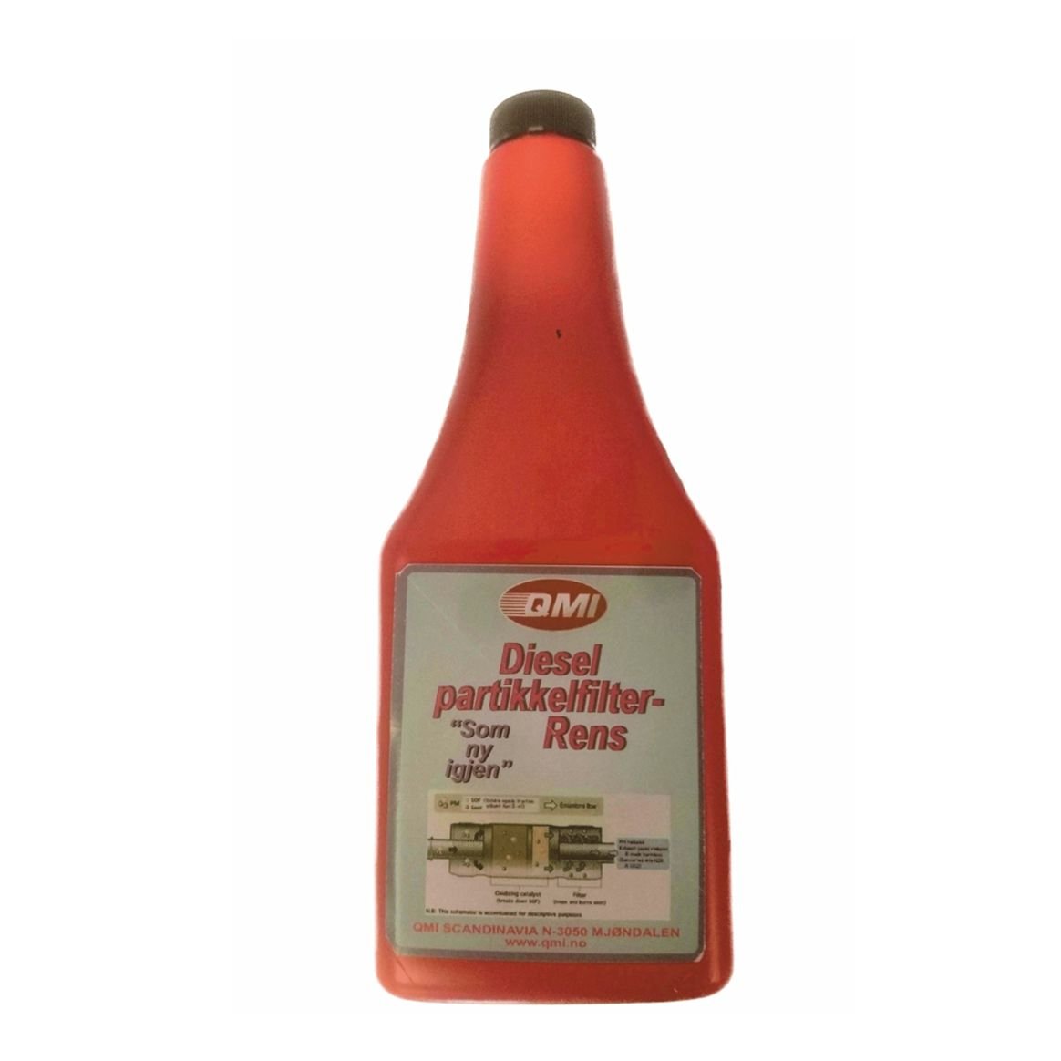 QMI DPF-Rens inneholder vannoppløslige tensider som er meget effektiv på dieselsot. De løfter soten fra oveflaten slik at den kan skylles ut